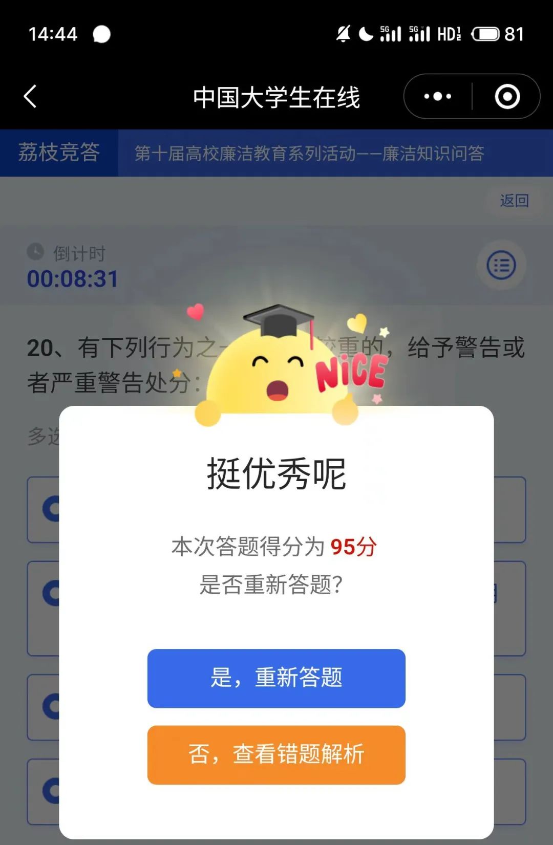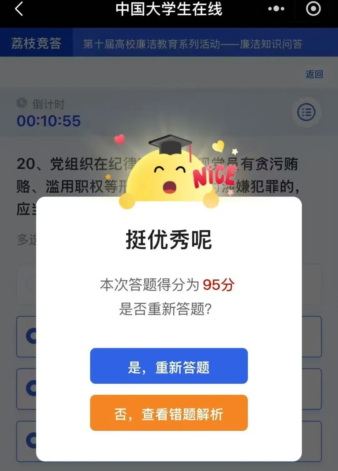 此次知识竞答题目涵盖廉洁历史、党纪法规与校园廉洁准则,同学们热情参与,在思考与答题中,深入理解廉洁内涵。从古代清官故事到现代廉政规定,一道道题目串联起廉洁文化的传承与实践,让“廉洁自律”不再是生硬的理论,而是融入青春成长的价值指引。