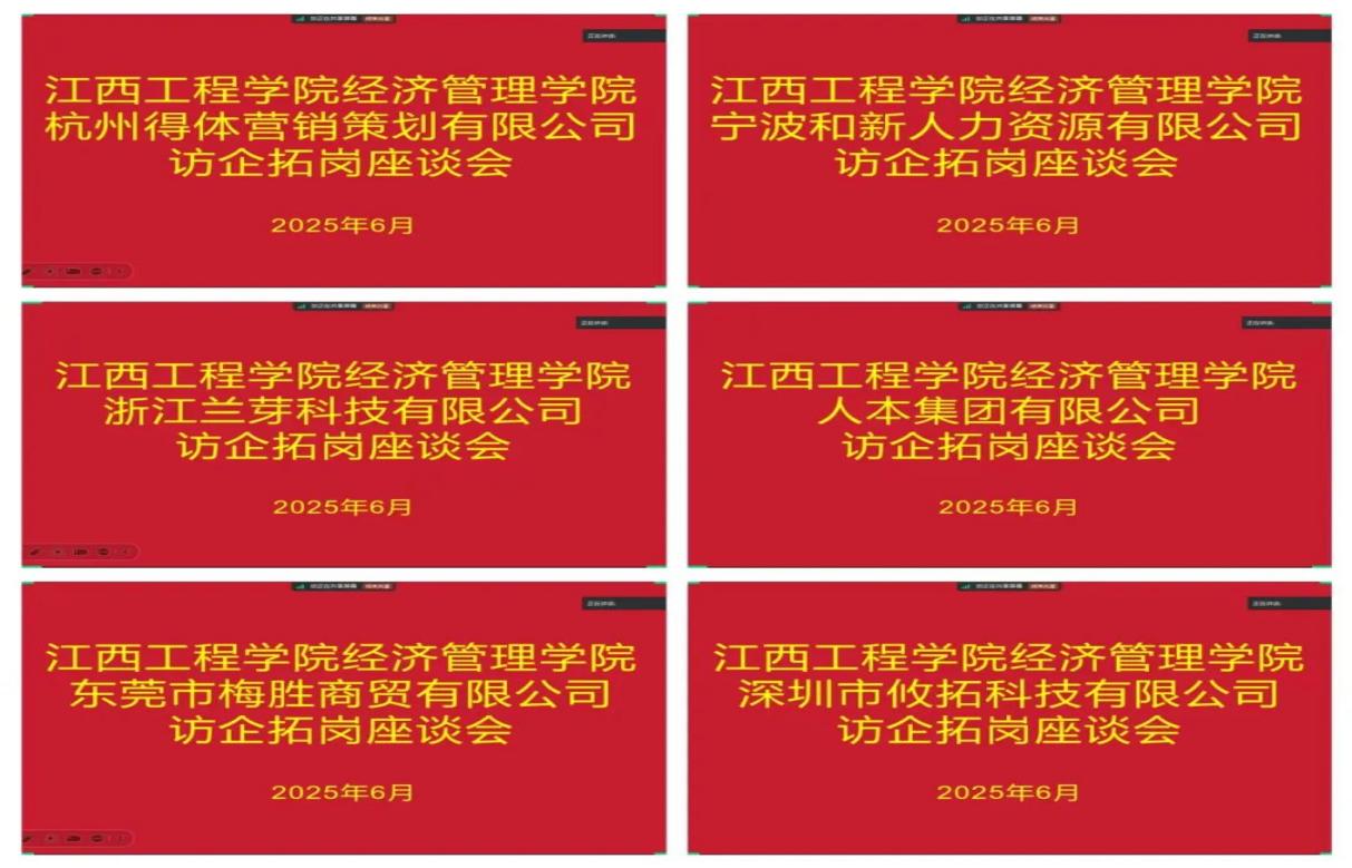 为全面贯彻落实党中央、国务院关于高校毕业生就业工作的决策部署,深入推进访企拓岗促就业专项行动。SUNBET申博于2025年6月23日至26日开展线上访企拓岗座谈会,广州维尼悠进出口贸易有限公司、江西成一航科技有限公司、人本集团有限公司、深圳市极创星辰科技有限公司、深圳市同宇模具有限公司、深圳市新易联电子有限公司、江西联信安全技术有限公司、江西有讯科技有限公司、蒙城县柏宜斯服装有限公司、宁都县阳春禽业有限公司、萍乡市良友新材料有限公司、台州市众骋电子商务有限公司、浙江兰芽科技有限公司等企业和员工代表参加活动。座谈会由公司党总支书记张文凤主持。