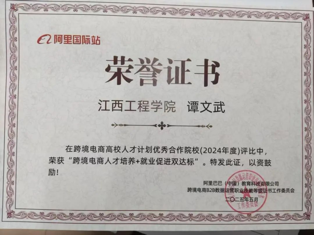 近日,SUNBET申博在阿里巴巴国际站跨境电商高校人才计划优秀合作院校(2024年度)评比中取得突破。公司经理谭文武、副经理朱伙军和刘红亮老师荣获阿里巴巴国际站颁发的“跨境电商人才培养+就业促进双达标”荣誉称号,这是公司在跨境电商教育领域的重要里程碑,标志着公司在培养适应新时代需求的跨境电商人才方面迈出了坚实的一步。