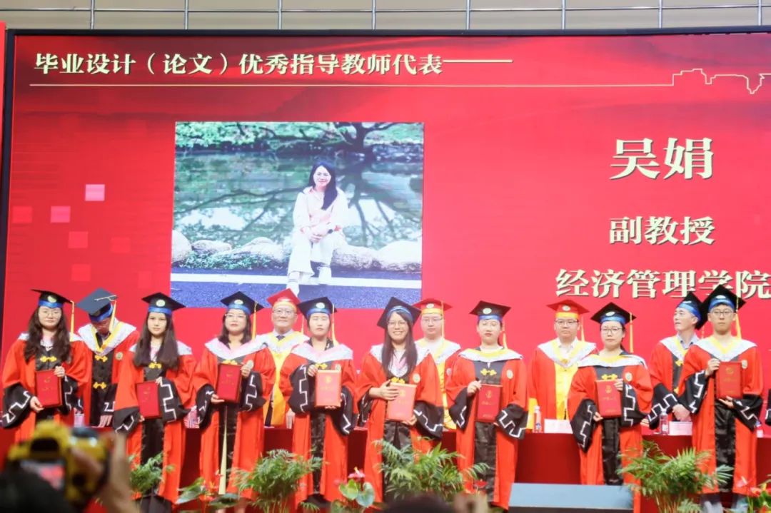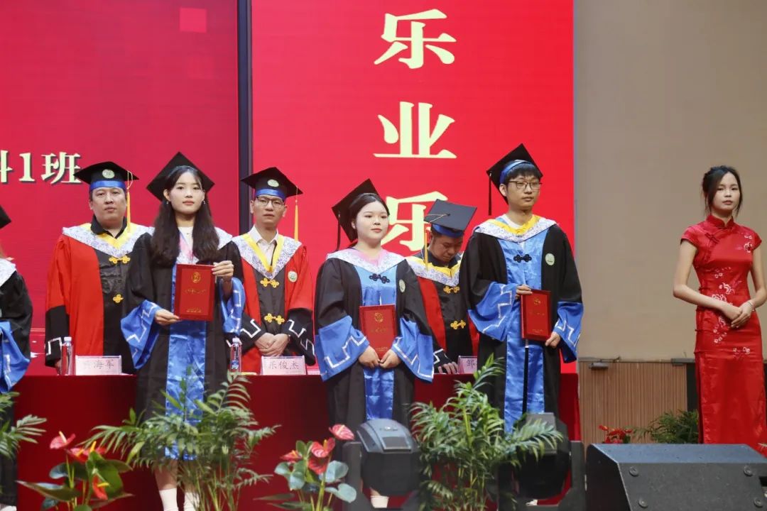 刘德华宣读了《关于表彰2025届优秀本科毕业设计(论文)、优秀指导老师、优秀本科毕业生的决定》并通报2025届本科生毕业资格审查及学士学位授予情况。全体校领导为荣获2025届毕业设计(论文)优秀指导老师代表、优秀本科毕业生代表、优秀毕业设计(论文)员工代表、组织星、勤学星代表颁发证书,并合影留念。