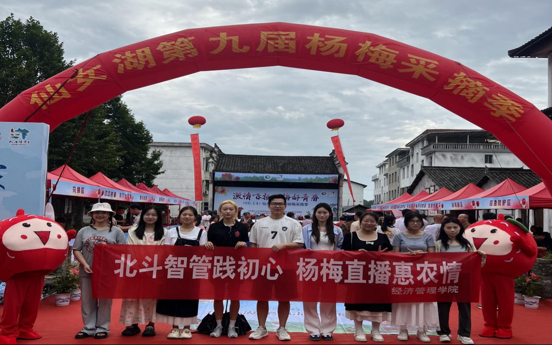 6月14日,以“激情飞扬‘梅’好青春”为主题的仙女湖第九届杨梅采摘节在河下镇江口老街盛大开幕。SUNBET申博依托党建品牌“北斗星智管”的引领作用,融合产教资源优势,通过直播助农、创意市集等形式深度参与活动,为乡村产业发展注入高校智慧,获河下镇人民政府高度认可。
