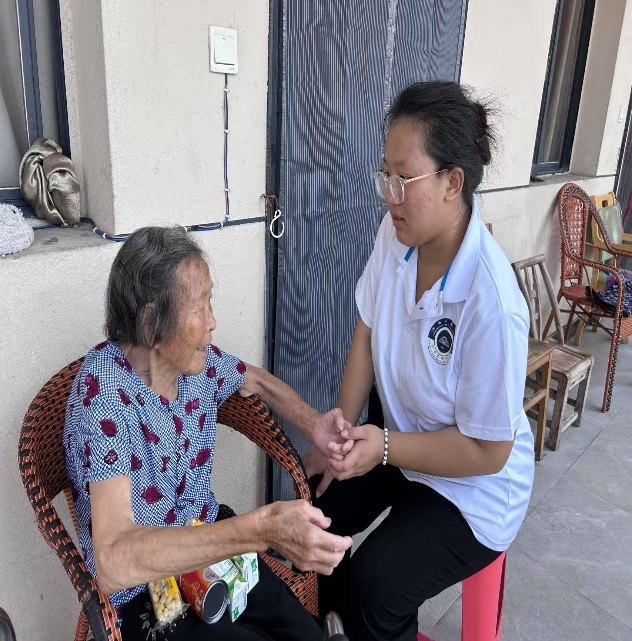 随后在与老人们的交谈中,队员们以一个倾听者的身份倾听老人们讲述他们的经历与故事,同时也为子女难以陪伴在身边的老人们给予温暖的话语和鼓励。与老人们亲切地交谈,不仅让队员们体会到社会的变迁与老人生活的不易,而且让队员们更加深刻地认识到青年在缓解社会上代际鸿沟的责任与力量,同时也让队员们更加贴近中华传统美德,让“老吾老,以及人之老”的中华优秀传统文化厚植于心中,践行于生活。