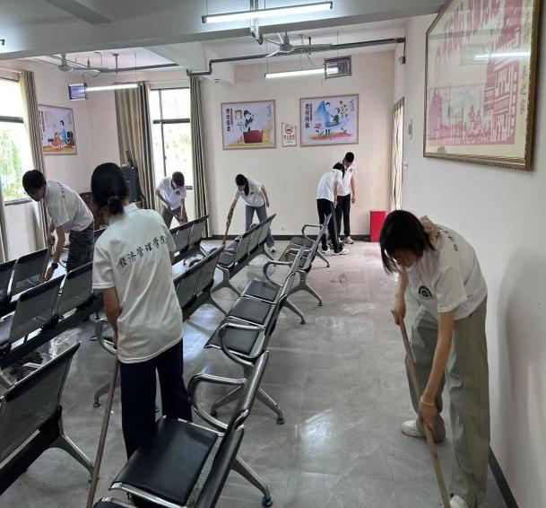 6日下午,实践队组织了一场“净美家园”活动,旨在为老人们提供舒适、干净的休闲娱乐环境。活动伊始,团队负责人邓旭将工作合理地分配给各队员们。此次清扫主要包括室内和室外两大区域,在室内区域,队员们积极主动、默契配合,一部分队员手持扫帚将各个角落的灰尘打扫干净,边角不留微尘,剩余队员挥动着拖把在地面来回滑动,地面光洁如初。