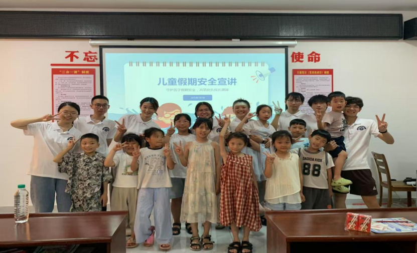 零食发放,甜在嘴里,暖在心上;假期安全宣讲,问答互动,知识入脑;齐背防溺水“六不准”,声声入耳,守护生命;游戏绘画,童趣飞扬,梦想绽放。今日,社会实践队不仅送去了欢乐,更播撒了安全的种子,让每个孩子都能在阳光下健康成长。三下乡,用心守护童年,用爱点亮希望。