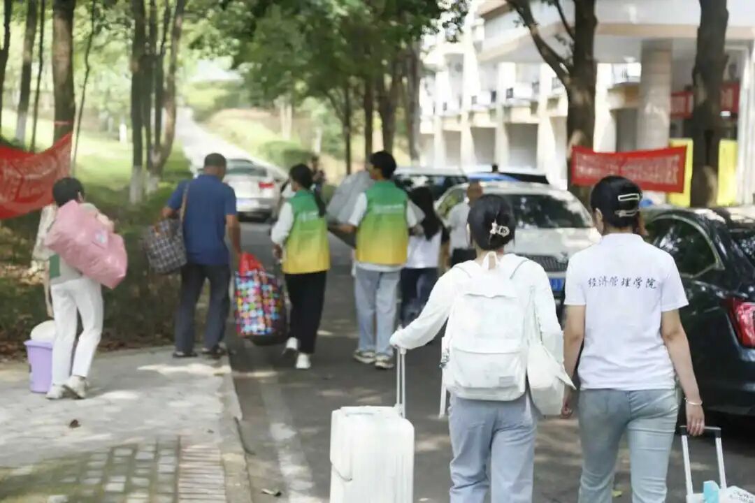 校园里,最亮眼的莫过于志愿者们,他们分布在各个岗位:门口接待、行李搬运、引导答疑、宿舍对接,不喊苦不喊累,活力满满地充当着“力工”“接待员”“万事通”,从迎新场地到寝室楼,确保学弟学妹都安全送达宿舍。从此以后,宿舍变成了另一个“家”。