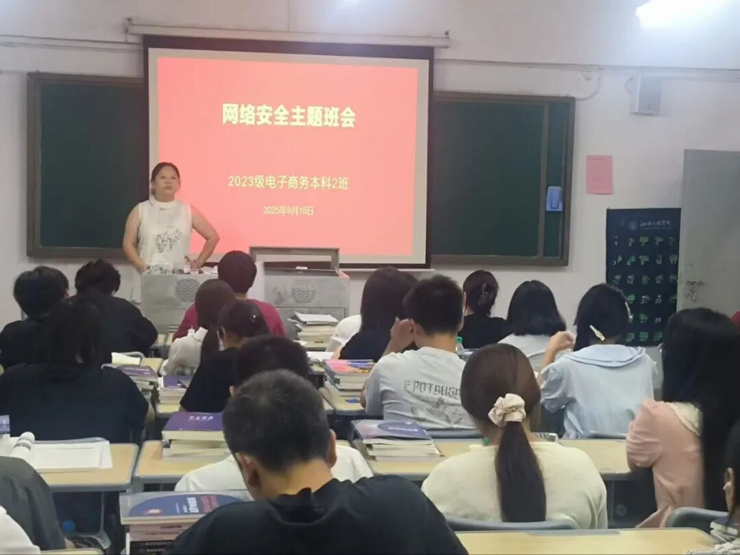 班会上,辅导员首先解读了《中华人民共和国网络安全法》等法律法规,强调了网络安全与个人信息保护的重要性。随后,通过展示典型案例,深入剖析了电信网络诈骗、个人信息泄露等常见风险,引导同学们树立正确的网络安全观。在互动环节,同学们围绕"如何安全使用网络"展开热烈讨论,分享了设置强密码、警惕钓鱼链接、合理使用社交平台等实用技巧。班会还特别强调了作为经管学子,应在网络空间中保持理性思考,不造谣、不信谣、不传谣,积极传播正能量。