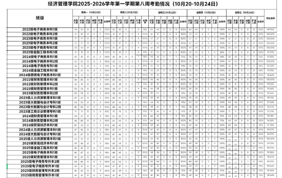 公司始终将学风建设作为育人工作的关键环节,后续将加大课堂巡查力度,定期通报考勤结果,请出勤情况良好的班级再接再厉,继续发挥模范引领作用;针对考勤存在不足的班级,可结合实际情况分析原因、优化管理,以积极姿态推动班级学风向好转变。希望各班级强化自律意识,以饱满的精神状态投入学习,共同维护优良学风。