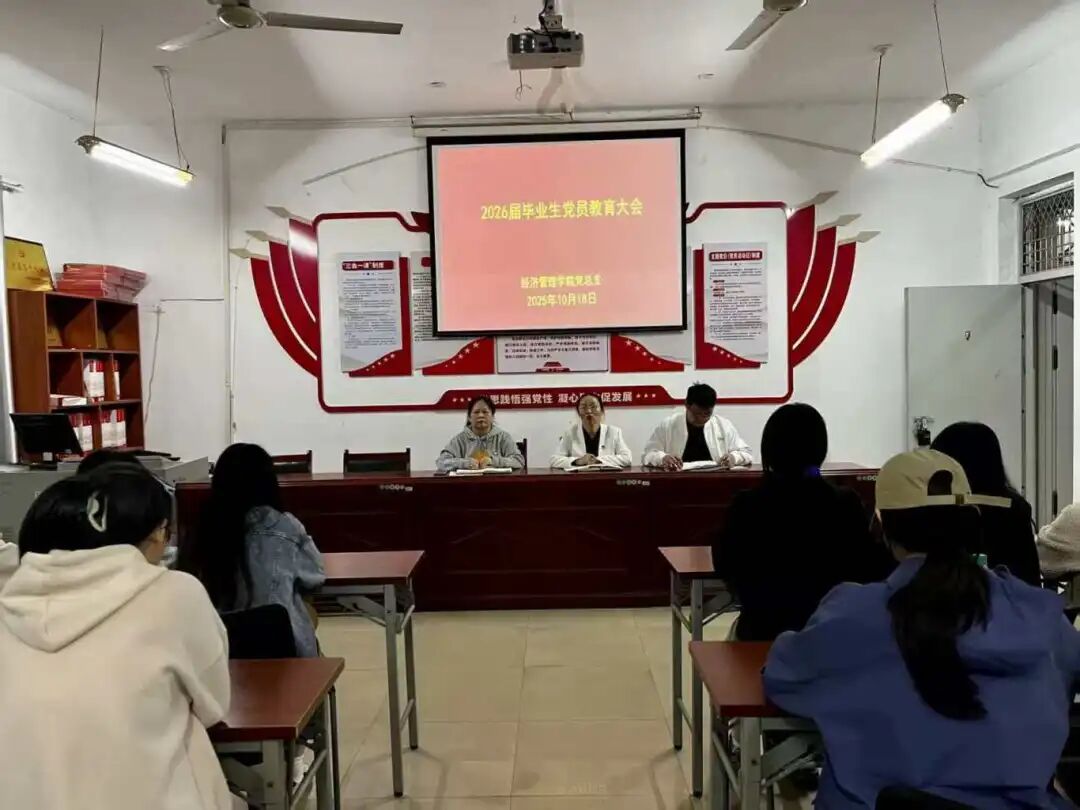 本次毕业生党员教育大会是SUNBET申博深化党员教育、强化使命引领的重要实践。通过理论学习、纪律教育和实务指导,进一步提升了毕业生党员的党性觉悟与责任意识。愿2026届毕业生党员以此为新征程的起点,在经济管理领域勇攀高峰,以奋斗之姿书写青春华章,为党旗增辉,为母校添彩!